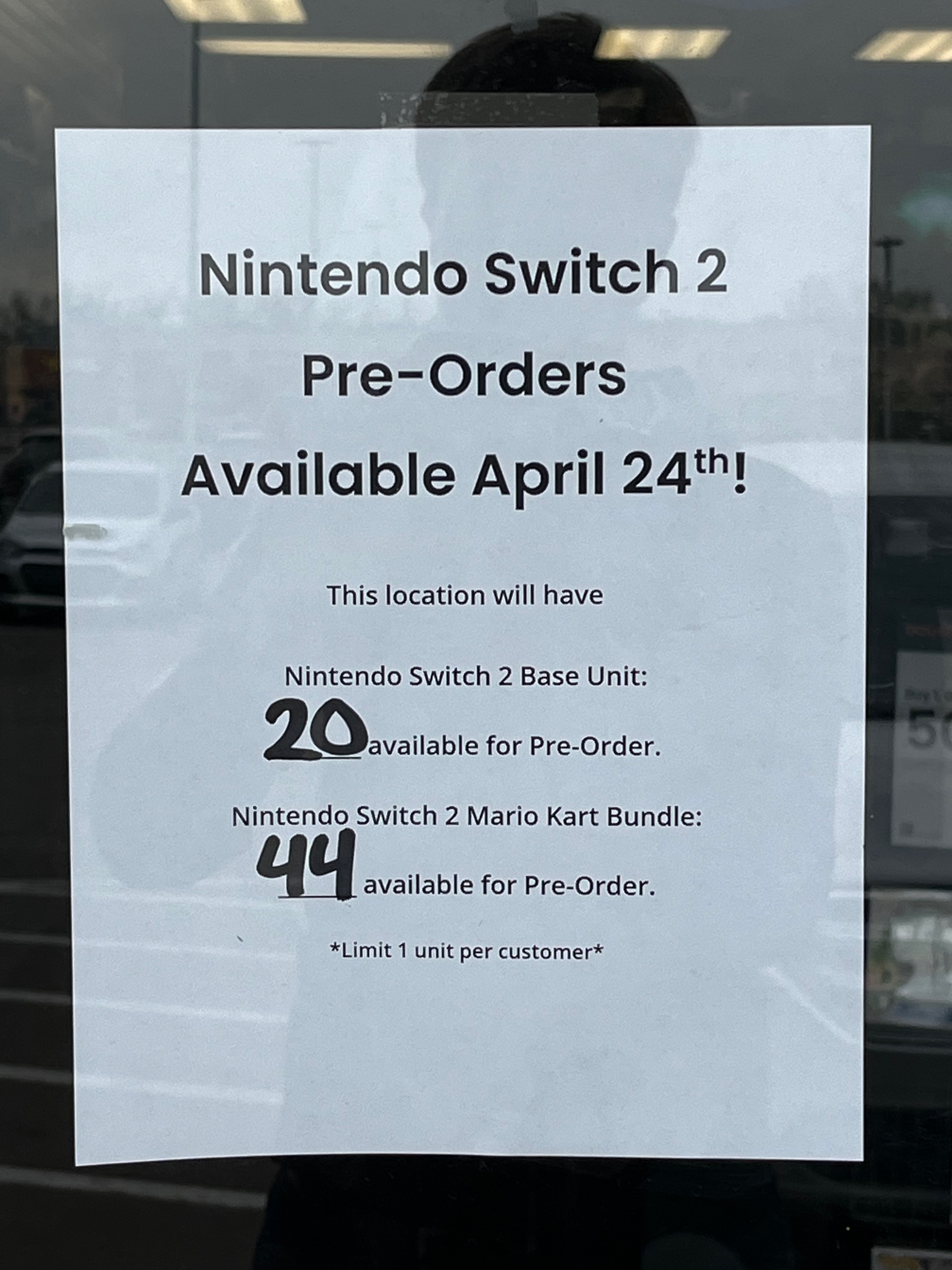 As I made my way to the back, two gregarious masked adults approached me, asking "Hi! Here for the Switch 2?" I confirmed I was and asked what my odds were. "Oh, they're great! Do you want the console with or without Mario Kart?" Just the console, please. "Awesome! This store will have 44 Kart bundles and 20 of just the console. You're 26th in line, but only the second person to want just the console!" They wrote my number and console preference on a sticky note before clarifying, "We don't work here — we just want to help!"